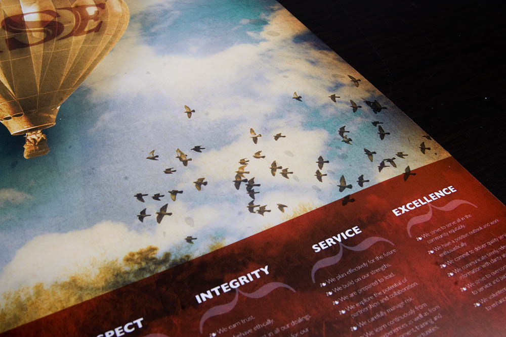 The City of Red Deer communicates its mission & values to staff and the public via posters throughout City facilities. This poster was designed to be something interesting to look at – the corporate text is minimized, and a retro image offers something more to look at than the average corporate values poster.