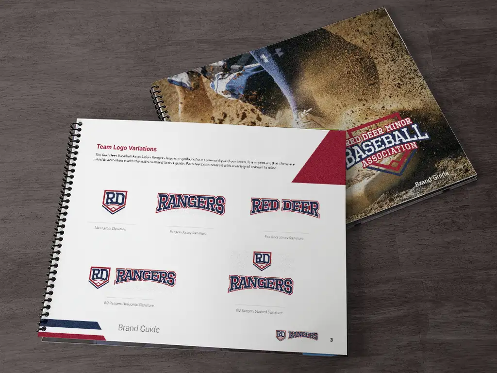 For one of Red Deer’s largest and most storied sports organizations, we created a clean, modular identity that’s versatile across merch, uniforms, and digital applications. This brand is required to look good on blue, red, white, black and photo backgrounds resulting in a multitude of options for each element.